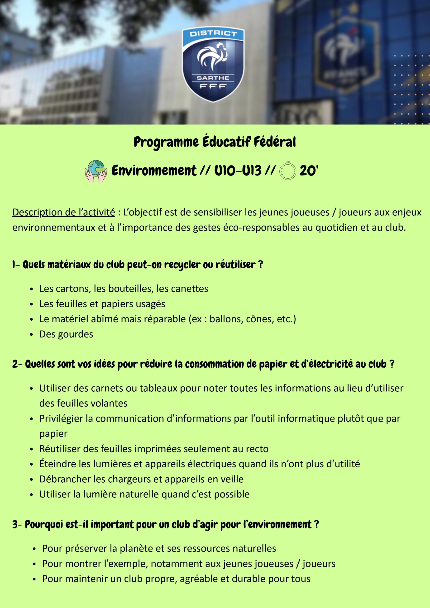 LES SECTEURS FOOT ANIMATION